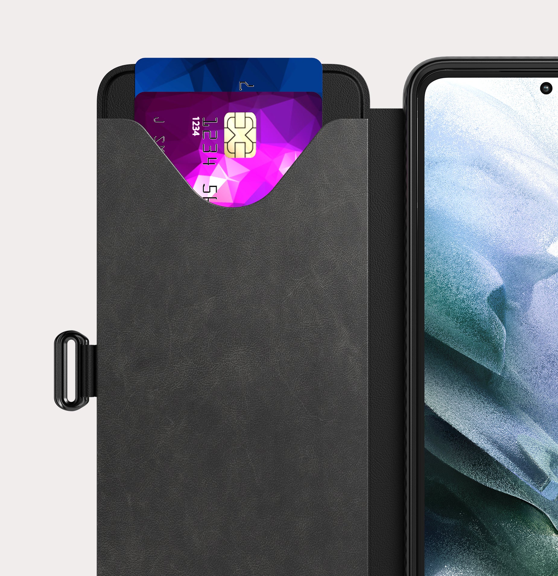 Never forget your wallet again –Make searching for your wallet and phone a thing of the past by keeping them both in one place with the Evo Lite Wallet in Black for the S24 Ultra. Featuring 10ft impact protection and three inbuilt card slots, this case is enhanced with a secure magnetic clasp and is complete with a landscape viewing mode option.